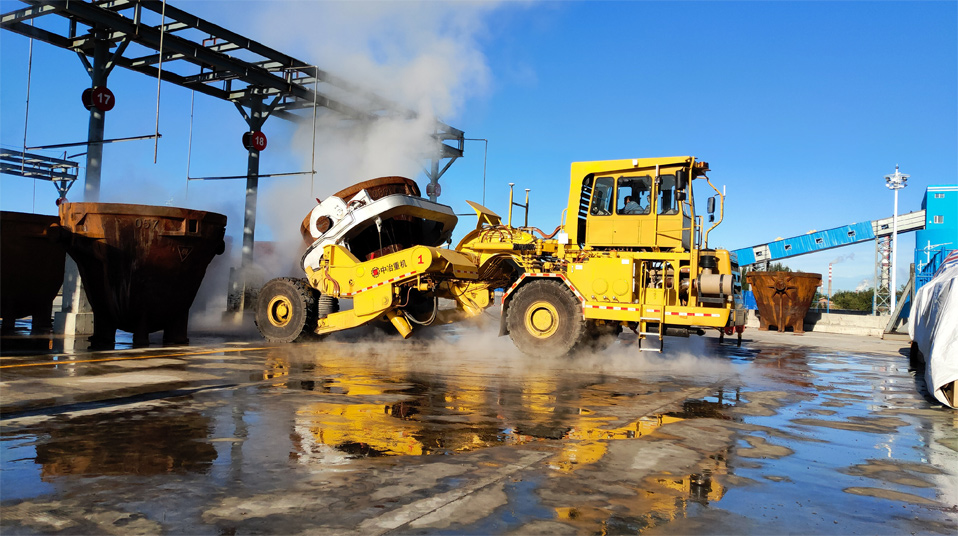 由中冶寶鋼研制的70噸鉸接式抱罐車,采用鵝頸鉸接型式,額定載重75噸,重載最高時(shí)速為每小時(shí)20公里,翻罐角度105度,最大爬坡能力8%,最小轉(zhuǎn)彎半徑9米。該車型應(yīng)用專利技術(shù)10項(xiàng),在國內(nèi)有色冶煉市場占有率超過75%,先后榮獲中國有色工業(yè)協(xié)會、中國鋼鐵工業(yè)協(xié)會科技獎(jiǎng),中國施工企業(yè)管理和中國循環(huán)經(jīng)濟(jì)協(xié)會專利獎(jiǎng)等榮譽(yù)。